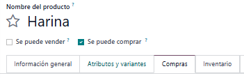 2. Selecciona el producto, y dentro del producto, ve a la pestaña de Compras.