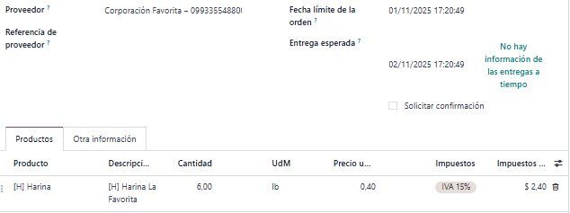 Esto es muy útil para empresas que manejan varios proveedores del mismo producto, ya que Odoo centraliza los precios y los aplica automáticamente.