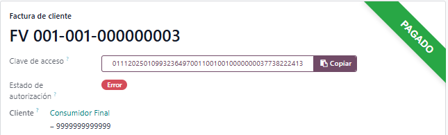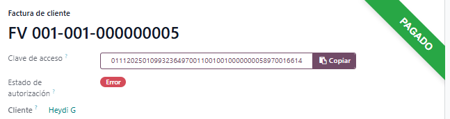 2. Una vez configurado el diario, creamos la factura y podrá notar que las facturas se van a emitir desde ese punto establecido y tendrán una numeración como: