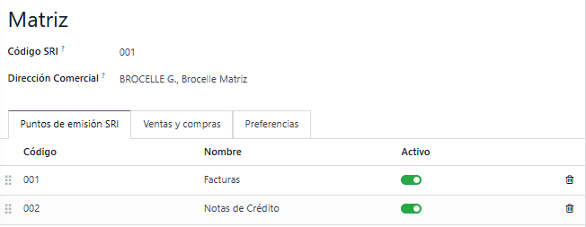 En Odoo, estos puntos de emisión permiten vincular las facturas electrónicas con la información legal del SRI: