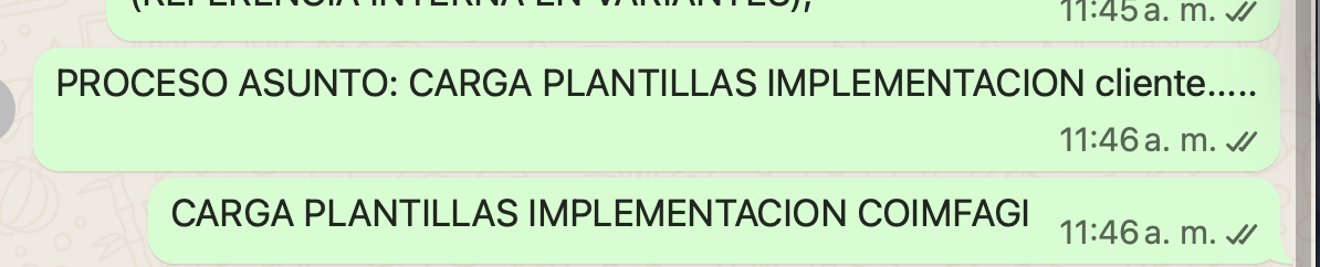 PARA CARGAR PLANTILLAS DE IMPLEMENTAACION EL ASUNTO DEBE SER UNO SIEMPRE Y LA ETIQUETA DEL CLIENTE . REVISAR ETIQUETA DE CARGAD E P;LAMNTILLAS