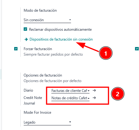 Los diarios que están dentro del link "Dispositivos de facturación sin conexión", deben ser diferentes a lo que están afuera en ajustes del pos